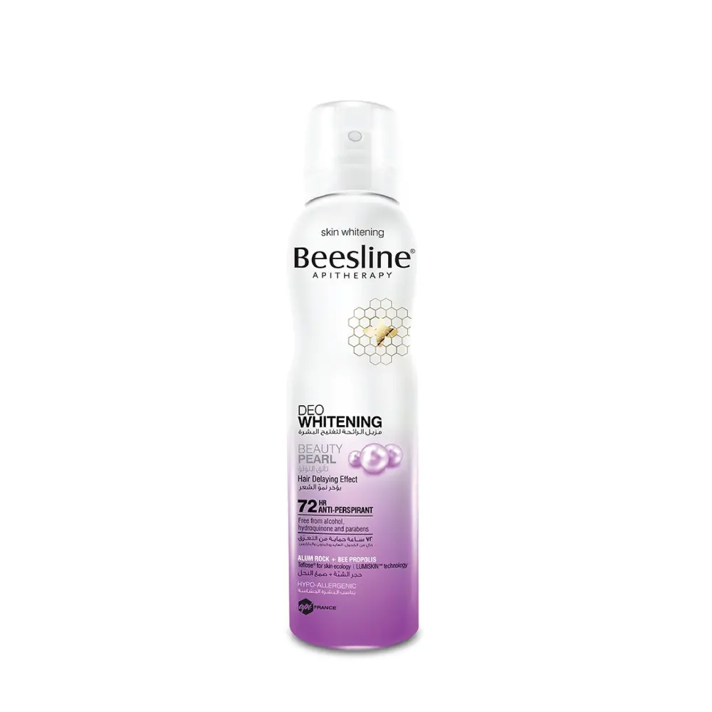 Beesline Deo Whitening Beauty Pearl-150ML is a skin-friendly spray deodorant with 72hr antiperspirant action to prevent moisture & body odour. All the while delaying hair growth & whitening, soothing & moisturising the skin for fresh & bright underarms.