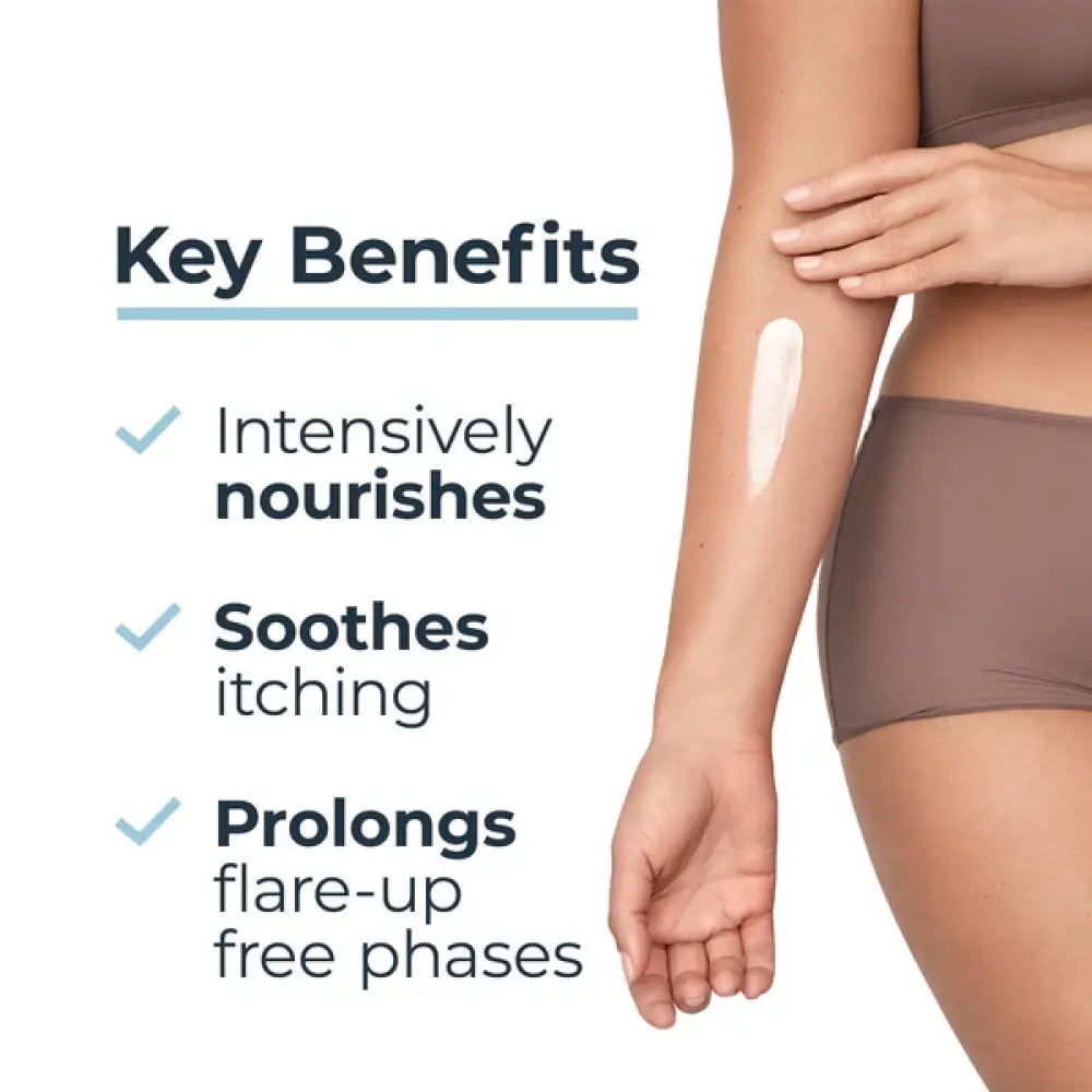 Apply daily to clean, dry skin. Gently massage until fully absorbed. Use as needed, especially after bathing or during flare-ups. Suitable for adults, children, and babies over 3 months.