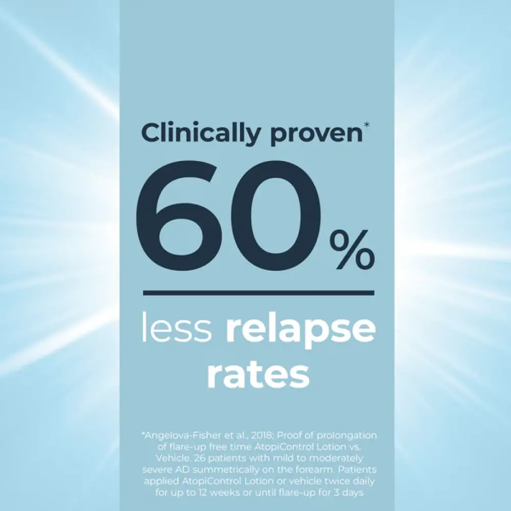 Eucerin atopicontrol rich calming body lotion is an easily absorbed and water-in-oil lotion that helps hydrate, soothe and reduce skin discomfort and dryness caused by atopic dermatitis. Its rich formula contains essential ingredients that ease itchy and dry skin. Licochalcone a actively soothes and calms inflammations, natural omega oils help stabilize skin’s natural protective barrier, and ceramides strengthen skin’s barrier to prevent moisture loss.
