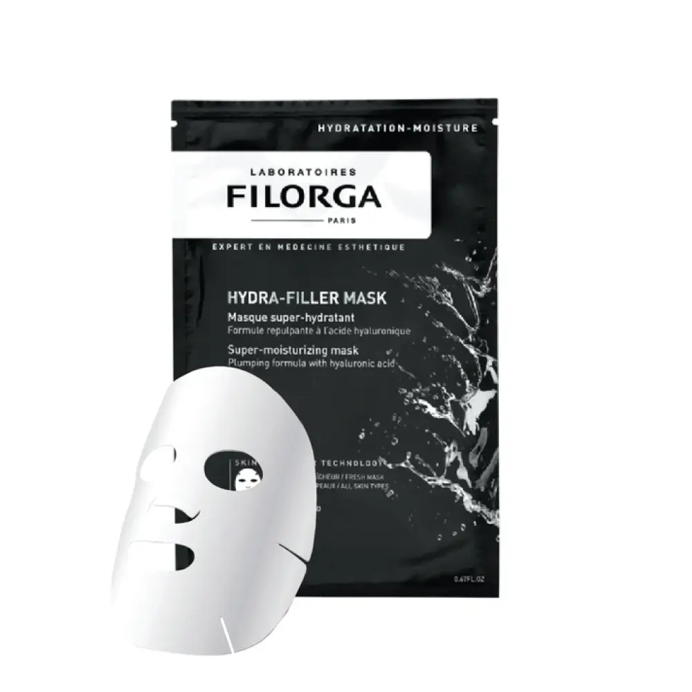 Filorga hydra-filler mask the power of a serum concentrated in a mask with a second-skin effect, for moisturized and visibly plumped skin in 15 minutes. Double hydration [flash + power]. Immediate beautiful skin effect. Skin-like fiber technology: an innovative technology that perfectly adheres to the curves of the face to boost the effectiveness of the formula.