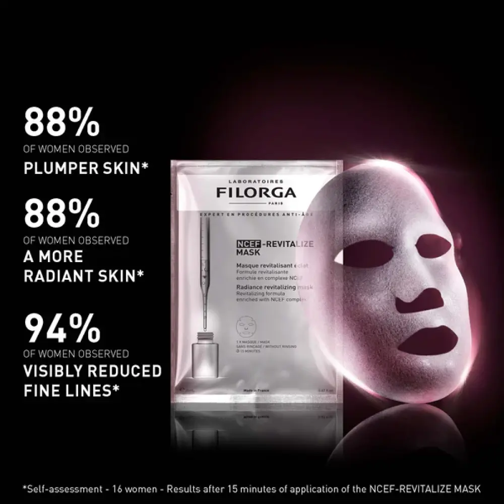 Filorga ncef-revitalize mask: Is a revitalizing radiance mask enriched with ncef, a complex inspired by revitalization injections used in aesthetic medicine, and hyaluronic acid. Leaves skin visibly plumped and illuminated in 15 minutes*.