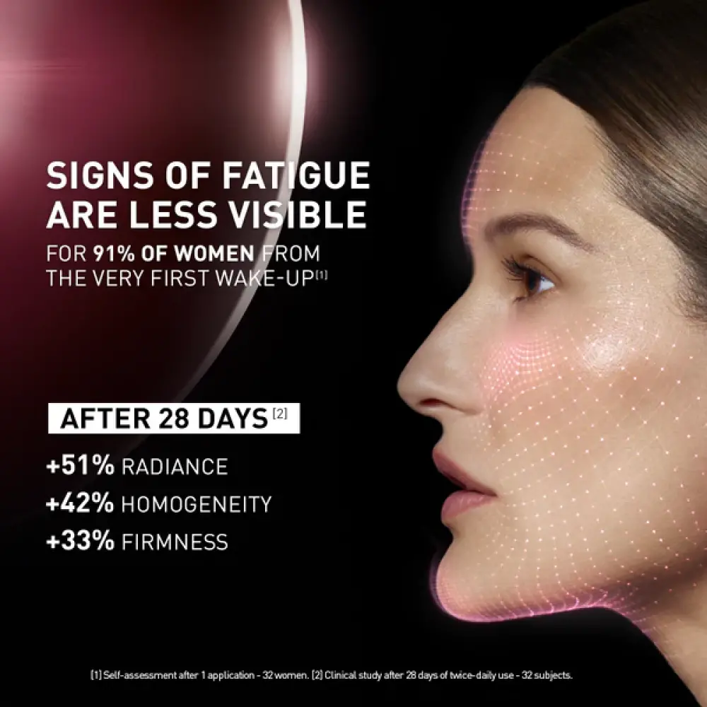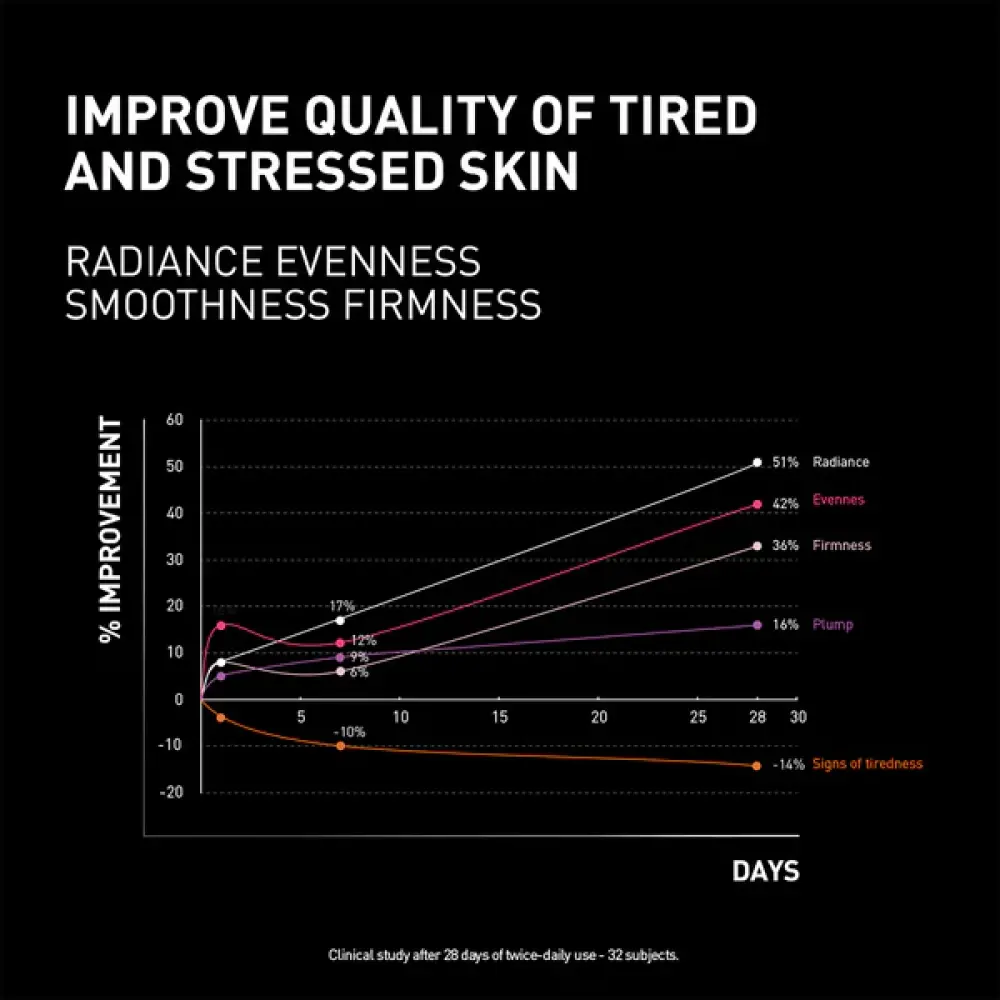 After 28 days, the results intensify: +51% radiance, +42% evenness.