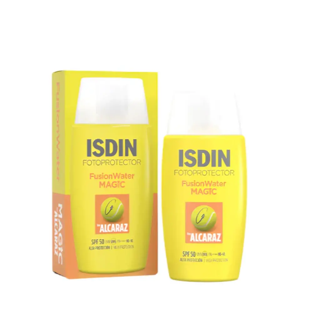 Isdin fusion water magic by alcaraz spf 50: ultra-lightweight facial sunscreen with a refreshing effect, ideal for sports.