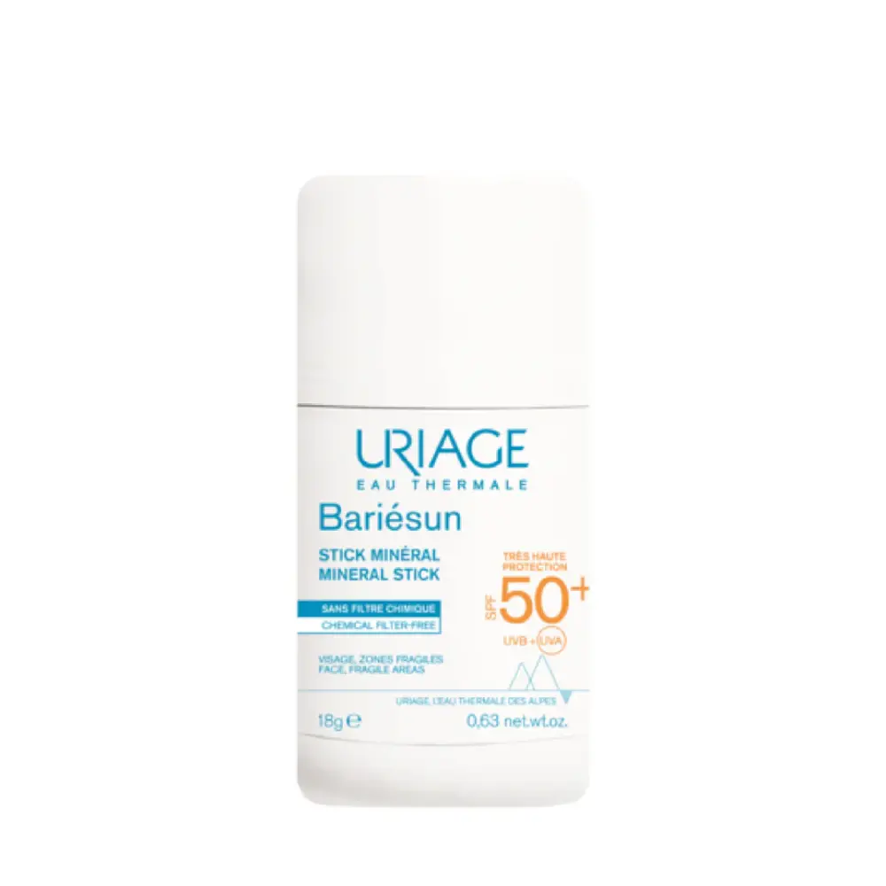 Uriage Bariesun Mineral Stick SPF50+ made of 100% mineral filters of natural origin, is specially designed to offer the highest protection to sensitive skin or skin intolerant to chemical filters. Thanks to its exclusive Skin Shield Technology, this stick effectively protects against UVA and UVB rays, helping to prevent cell damage and photo-aging, while respecting the most reactive skin. Whether you're at the beach, hiking, in the city or at altitude, easily slip it into your bag for optimal sun protection, wherever you are.