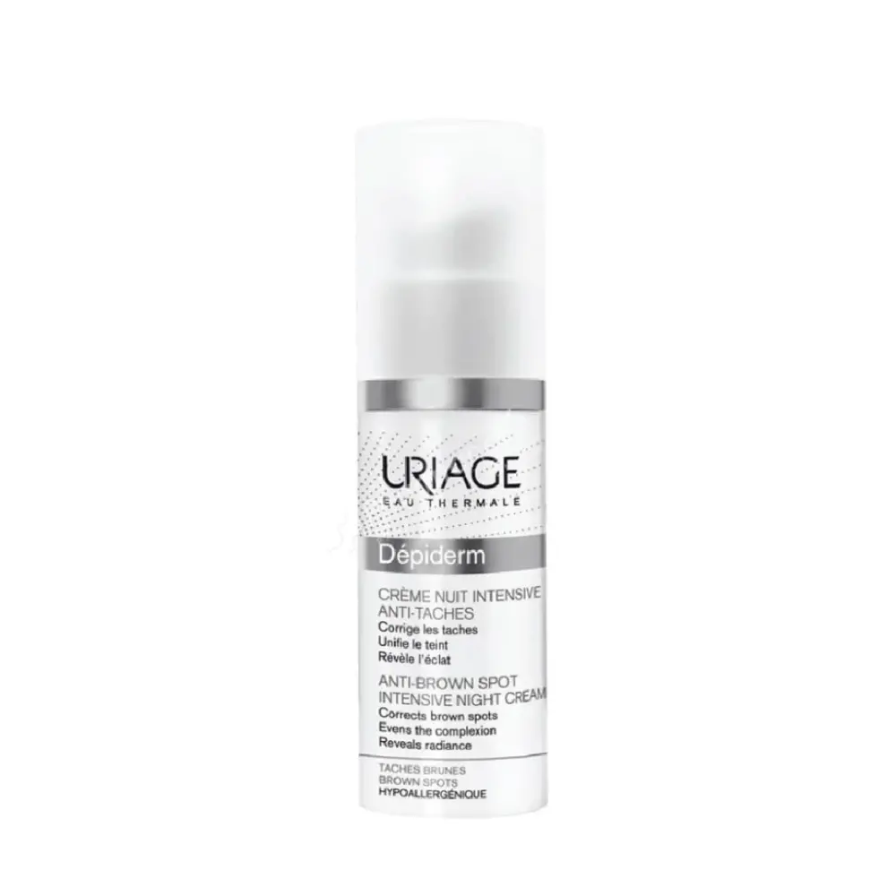 Uriage Depiderm Intensive Night Cream is a cream to effectively combact brown spots. Corrects brown spots and gives uniformity and radiance to skin tone. Its composition combines soothing, antioxidant, and active ingredients against brown spots, giving uniformity to the skin and eliminating imperfections due to discoloration. AHA & BHA gently exfoliate the skin and stimulate cell renewal. The combination of 3 acids of different molecular sizes allows for complete action: fast and long lasting.