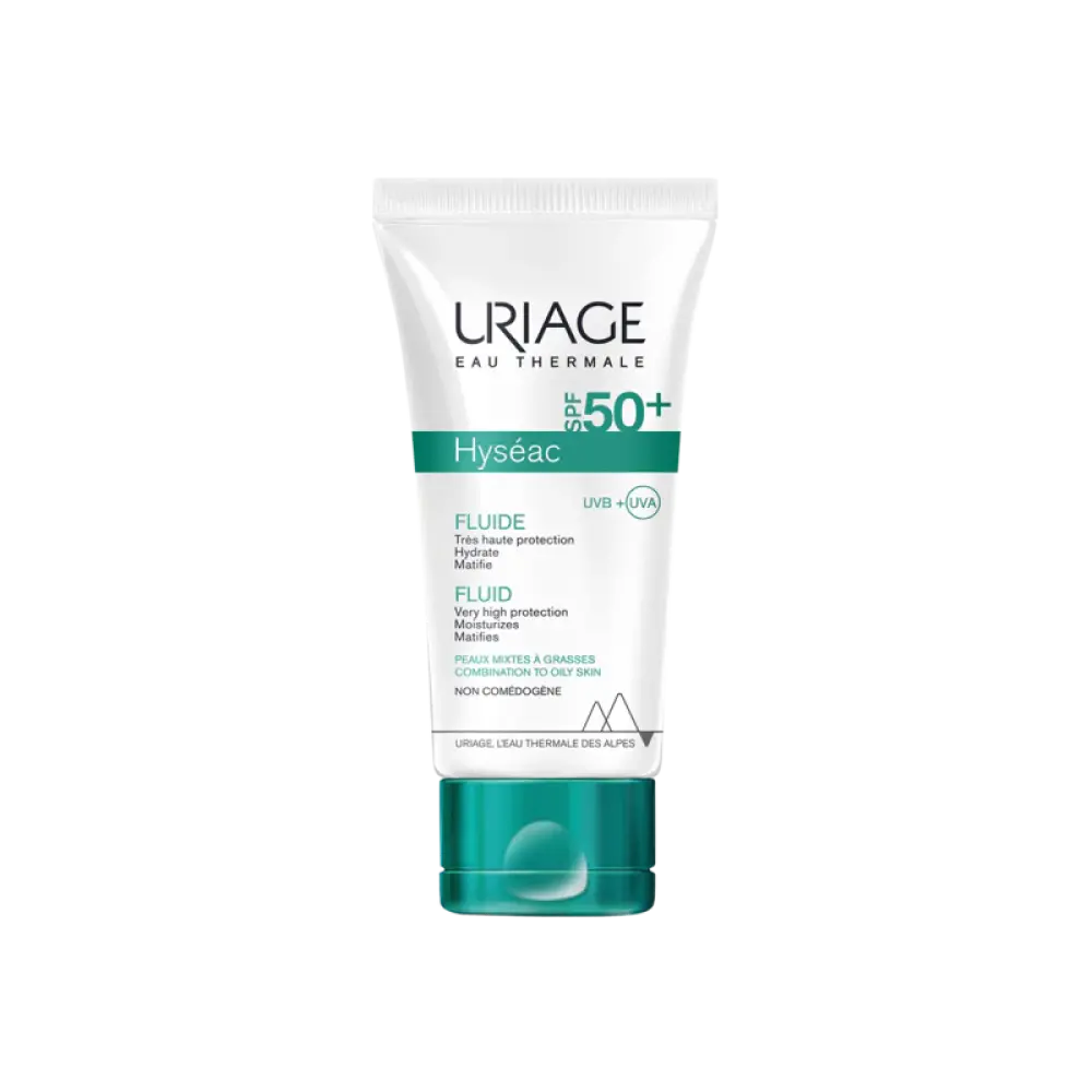 Uriage Hyséac - Fluid Spf50+ combines effective sun protection and properties specifically tailored to combination to oily skin. It offers very high-performance UVA-UVB protection thanks to a new highly effective octocrylene-free filtering complex. Its texture is non-sticky and non-greasy.