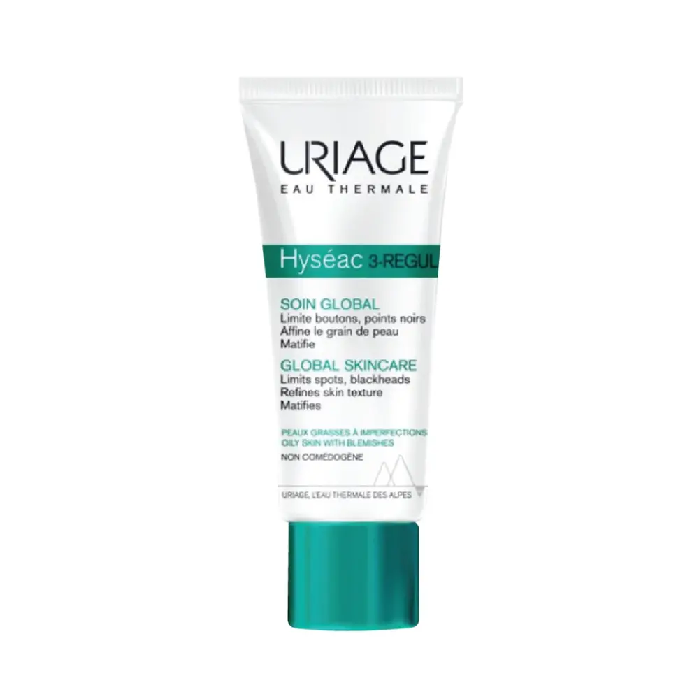 Uriage Hyseac 3-Regul Global Skin Care promotes the elimination of skin flaws (spots, blackheads, shine) and leaves the skin clear and matte.