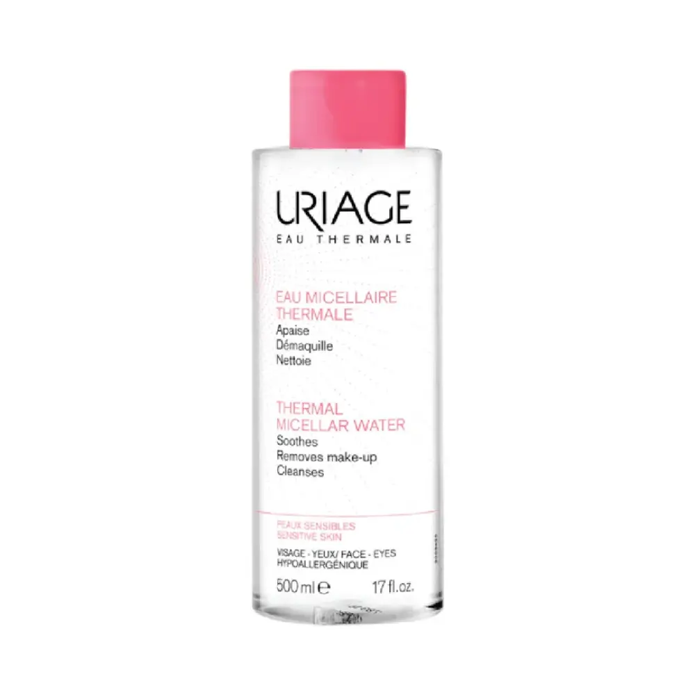 Uriage Thermal Micellar Water- Sensitive Skin are perfectly suited for removing make-up from all skin types, thanks to the unique properties of Uriage Thermal Water. The micelle's gentle, non-ionic constituent surfactants, act like magnets to effectively capture make-up and impurities.