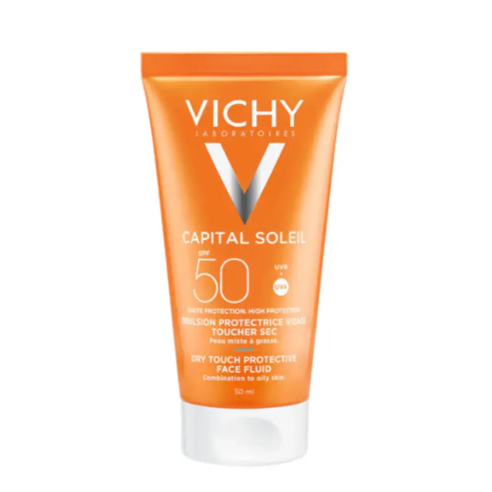 Vichy capital soleil dry touch anti shine sunscreen spf50 helps protect the skin against the harmful effects of the sun and its uv rays. It has a soft, dry, zero shine, water-resistant finish. Combats premature ageing and the damaging effects caused by uv rays using the mexoryl®, a uva and uvb filtering system. Suitable for combination with oily skin and those looking for a non-shiny sunscreen product.