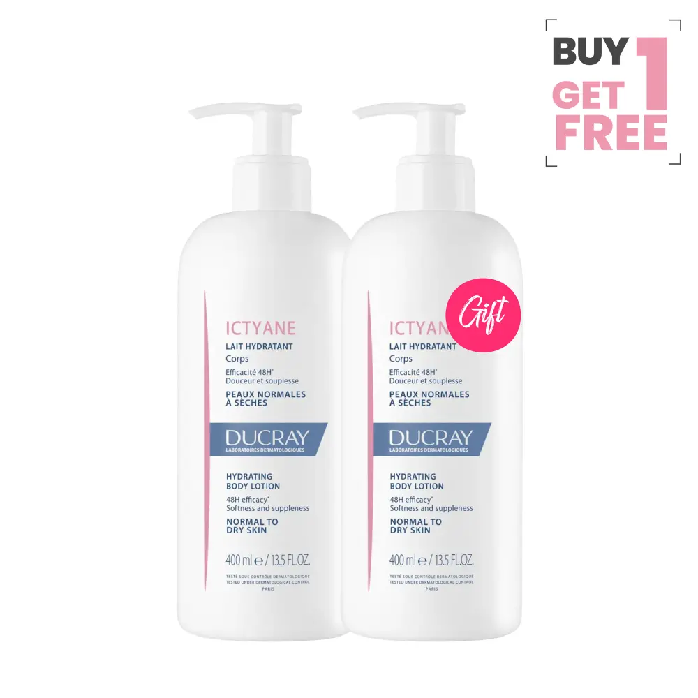 Ducray Ictyane Hydrating Body Lotion 400 ML (Buy One Get One): Especially formulated to provide suppleness and softness to the normal to dry skins.