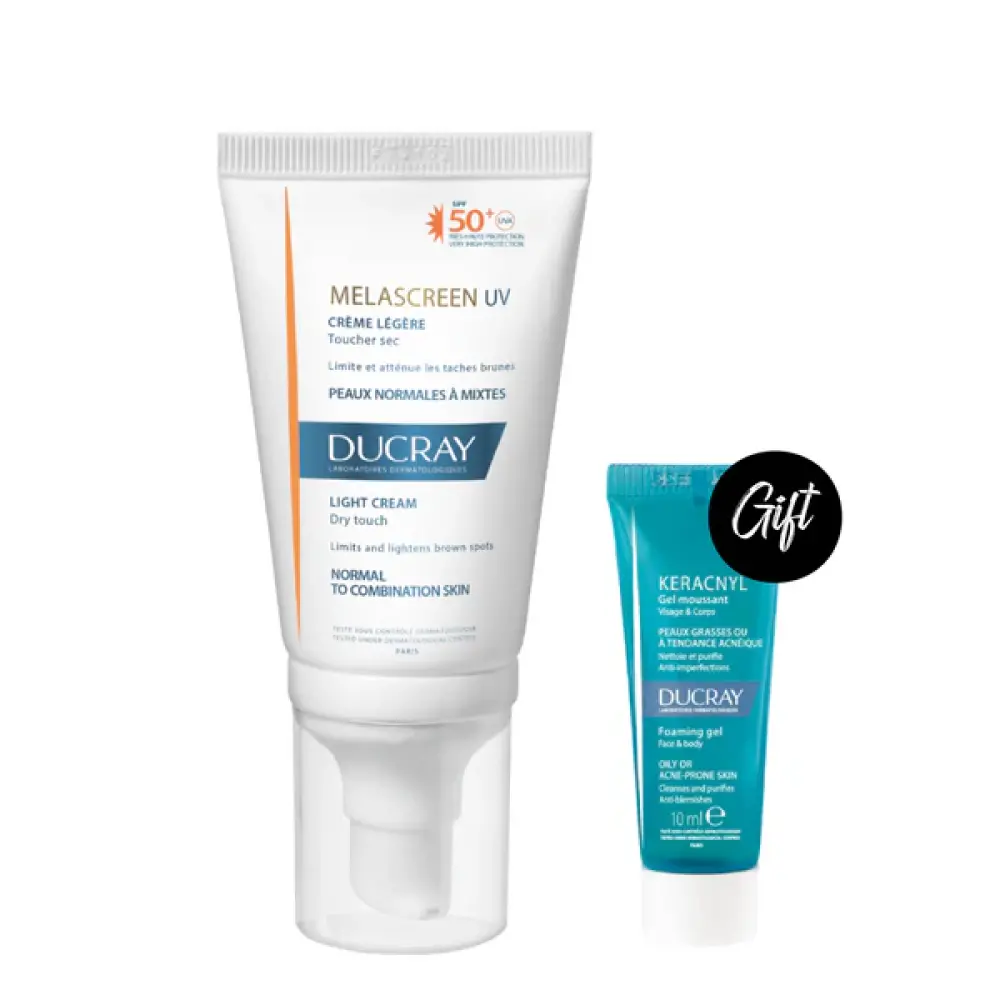 Ducray melascreen uv fluid spf50+ Is the 1st daily anti-spots fluid with very high protection that prevents and reduces the appearance of brown spots, while protecting the skin against uvb, short and long uva rays, blue light and the harmful effects of pollution.