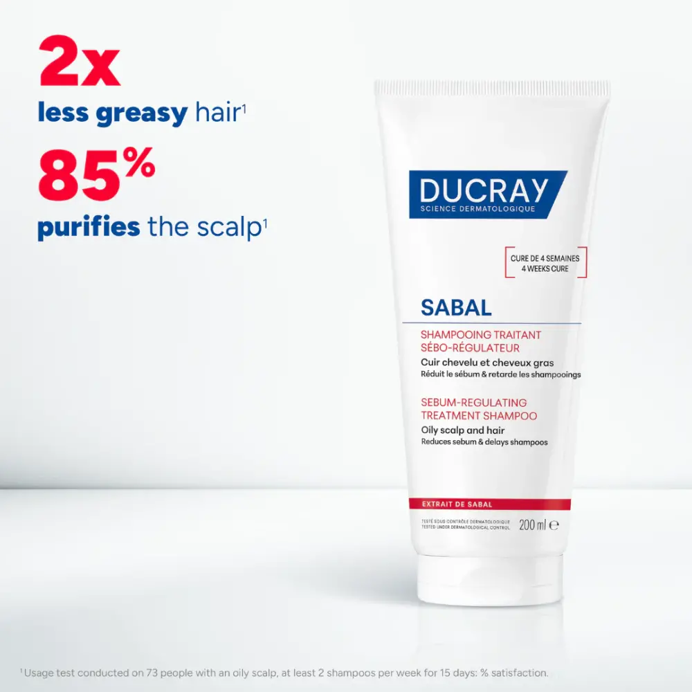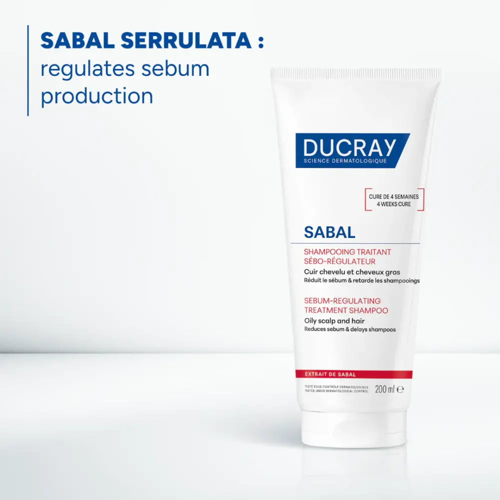 Ducray Sabal Sebum Regulating Treatment Shampoo for Oily Hair is an intensive care solution for oily scalps and hair. Dermatologically tested, it cleanses effectively while respecting the scalp’s natural balance. Formulated with a concentrated extract of Sabal serrulata, a proven anti-seborrheic active ingredient, it helps regulate and reduce excess sebum at the source. The result is a purified scalp with roots that feel fresh, light, and less greasy.