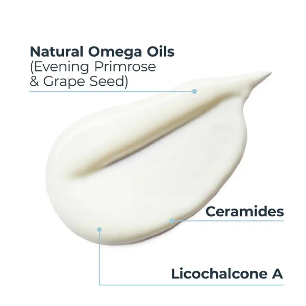 Aqua, glycerin, paraffinum liquidum, vitis vinifera seed oil, oenothera biennis oil, octyldodecanol, peg‑7 hydrogenated castor oil, dimethicone, glycyrrhiza inflata root extract, ceramide np, tocopherol, ozokerite, sorbitan isostearate, methoxy peg‑22‑dodecyl glycol copolymer, peg‑45 dodecyl glycol copolymer, peg‑2 hydrogenated castor oil, hydrogenated castor oil, ascorbyl palmitate, citric acid, sodium citrate, magnesium sulfate, bht, 1,2‑hexanediol, phenoxyethanol, potassium sorbate.