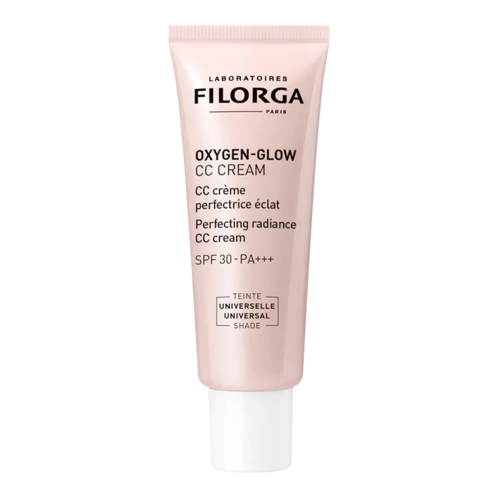 Filorga oxygen-glow cc cream spf 30 helps reduce the effects of urban lifestyle and skin changes caused by pollution, uv rays, stress, fatigue and others. One universal shade that gives radiance for all types of skin. Inspired by aesthetic medicine and with a triple action, this cream has a perfecting, illuminating effect and also protects from uva/uvb rays and blue light for a triple action with spf30. The formula of this cc cream is inspired by carboxytherapy which helps to improve tissue oxygenation and naturally boost skin glow.