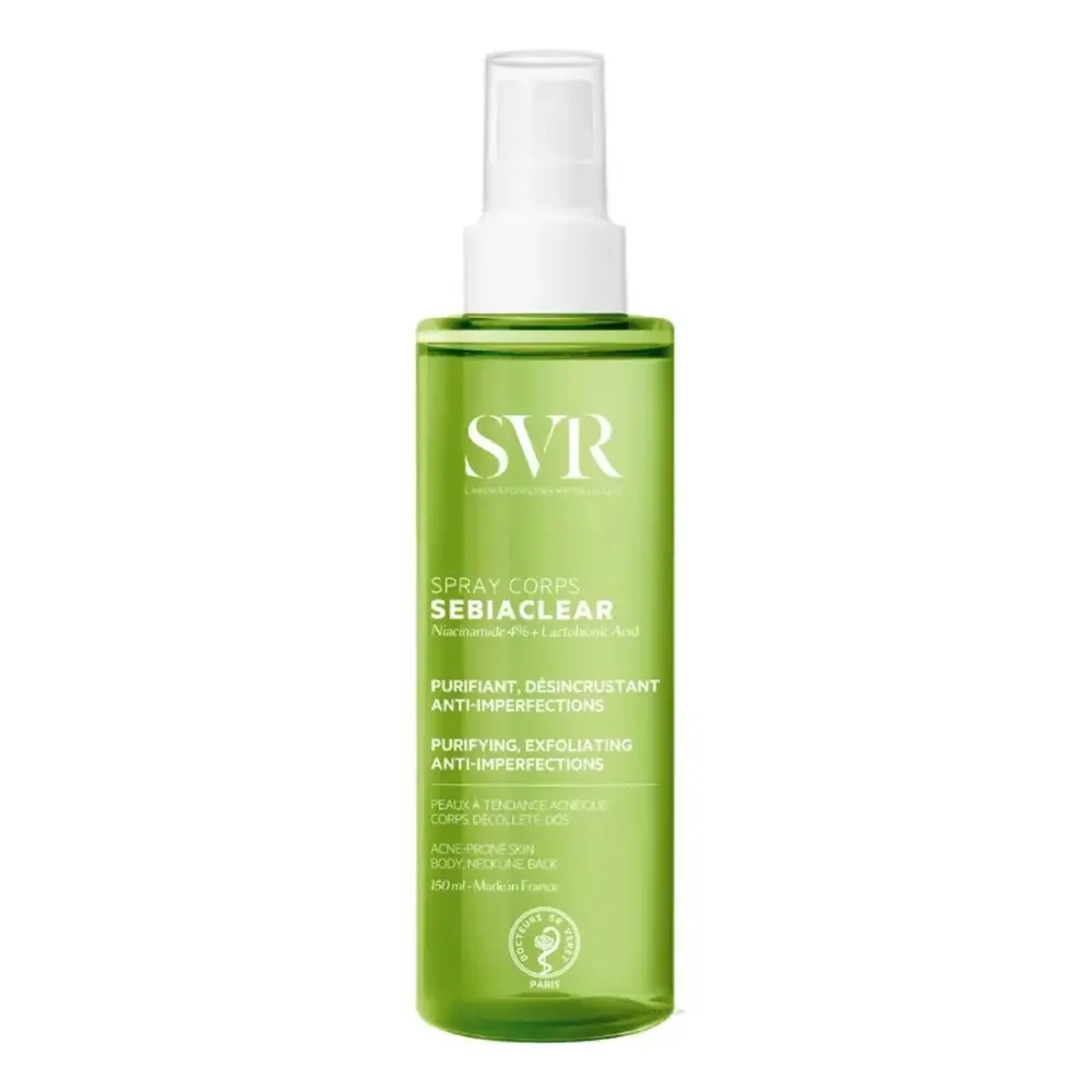 Svr sebiaclear spray is formulated to correct all imperfections of the back, shoulders and décolleté. Sebiaclear body spray is 40% off pimples after 2 weeks!1It reduces blemishes and prevents their reappearance, smoothes skin texture and reduces post-acne marks. Bye bye to body imperfections!